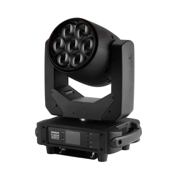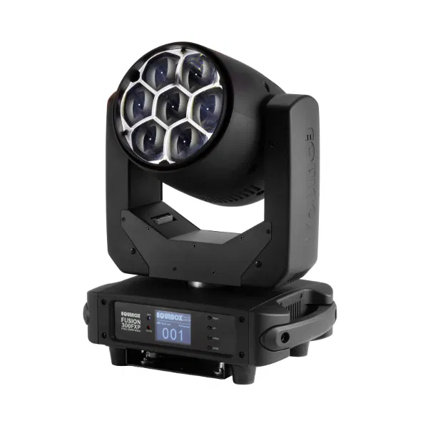 The Equinox Fusion 300FXP Zoom Wash is a compact RGBW moving head fixture featuring 7 x 40W quad-colour LEDs (RGBW), fully pixel mappable to create stunning eye candy effects. A motorised zoom function ranges from a narrow 5° beam angle to a wide 40°, and the front-lens rotation allows superb mid-air multibeam effects and wide washes of colour. This powerful stage lighting unit also includes colour temperature presets, DMX, auto, sound active, manual control, and primary/secondary modes – all accessible via the onboard 4-button menu.