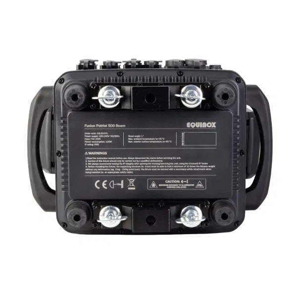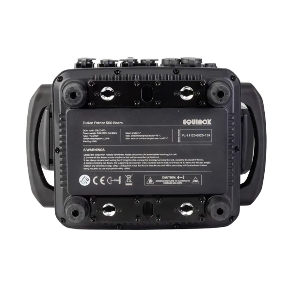 The Equinox Fusion Patriot 500 Beam is a compact yet powerful IP65-rated moving head beam designed to thrive in the toughest environments. Powered by a 50W white laser source (7000K), it delivers an intense 105,000 Lux at 10 metres through a sharp 1° beam. Packed with creative tools including 19 static gobos, a 12-colour wheel plus a rainbow effect, and two rotating prism wheels for layered aerial visuals, this fixture is ideal for professional stage and event applications. Additional features include motorised focus, frost filter, 16-bit pan/tilt with autocorrection, and selectable 14 or 18-channel DMX control. With 3/5-pin DMX, PowerTwist TR1, and quick-release omega clamps, this versatile fixture integrates seamlessly into any rig.